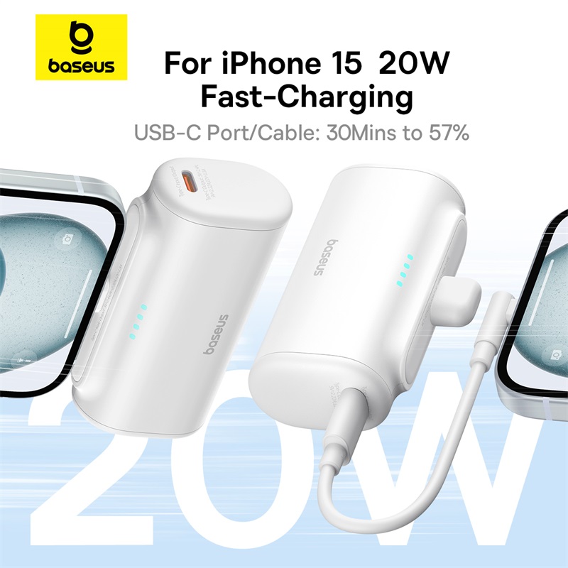 【Local Stock-48 hours shipped】Baseus Fast Charging Power Bank with Built-in USB-C 5000mAh Portable Charger 20W for iPhone 15/15 Plus/15 Pro/15 Pro Max Sansung S22 and more